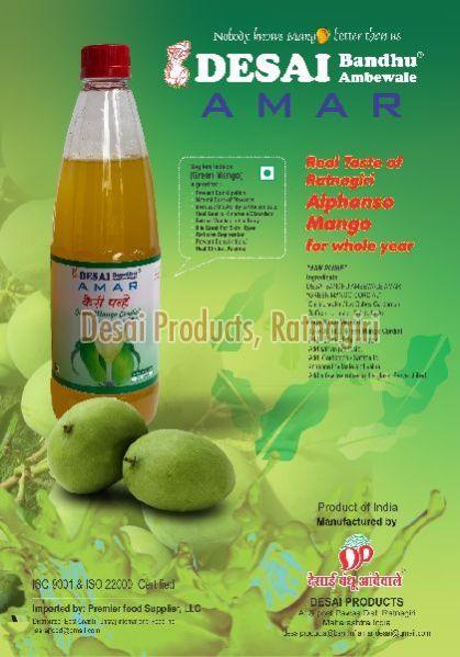 This product is produced from raw mango. The juice of raw mango is extracted by soaking it in Sugar for 7 / 8 days. It is used as Sharbat. It is sweet and sour in taste.